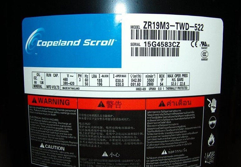 Sistema de refrigeración Copeland Compresor hermético de rollo ZR19M3-TWD-551